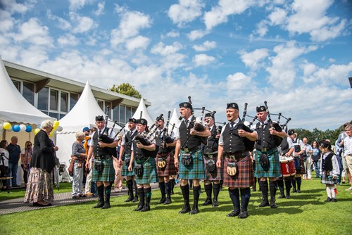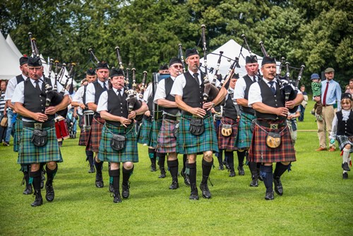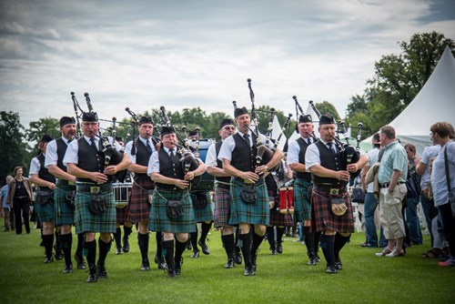 Pipes bleiben einsatzbereit, Rechte Hand mit lockerer Faust am Kilt.